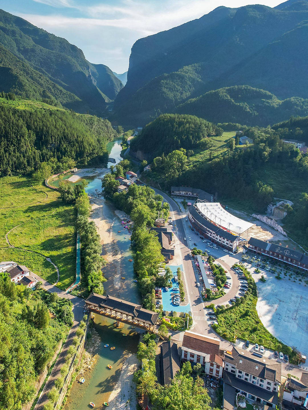 2.龙潭河风景区(3A)(达州市万源市旧院镇):“川东第一漂”,河道全长12公里,水流平缓且清澈,沿岸竹林茂密,可体验竹筏漂流、水上烧烤,配套温泉民宿。交通:万源站乘川迹时光专线车1.5小时直达,景区内漂流船票80元/人。适配人群:青年游客、亲子家庭、团建团队。川迹时光团享漂流+温泉套票120元(原价160元),赠防水手机袋。